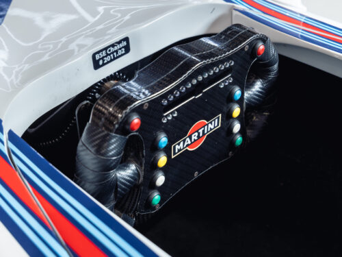 Finished in the iconic Martini racing livery, the car immediately attracts attention and forms the centrepiece of any space, from corporate reception areas and showrooms to private collections and luxury garages.